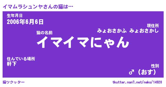 | ポケモン風あだ名 | 『イマチュウ』『イマムダネ』 |