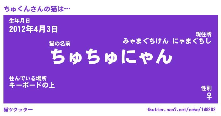 | 肩書あだ名 | 『ちゅくんCEO』『ちゅくん総理大臣』 |