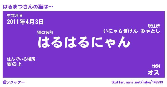 | 意味不明あだ名 | 『ペロリンはるまつ』『永久保存はるまつ』 |