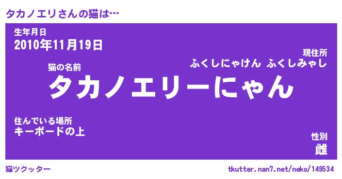 | ファンタジー風あだ名 | 『タカフェル』『エターナルタカノエリー』 |