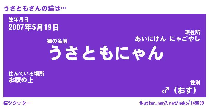 | 意味不明あだ名 | 『ペロリンうさとも』『永久保存うさとも』 |
