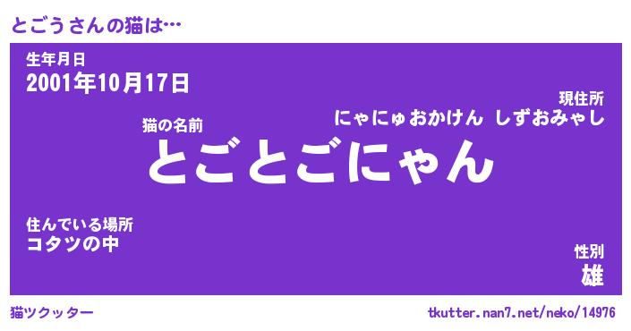 | ポケモン風あだ名 | 『トゴチュウ』『トゴウダネ』 |