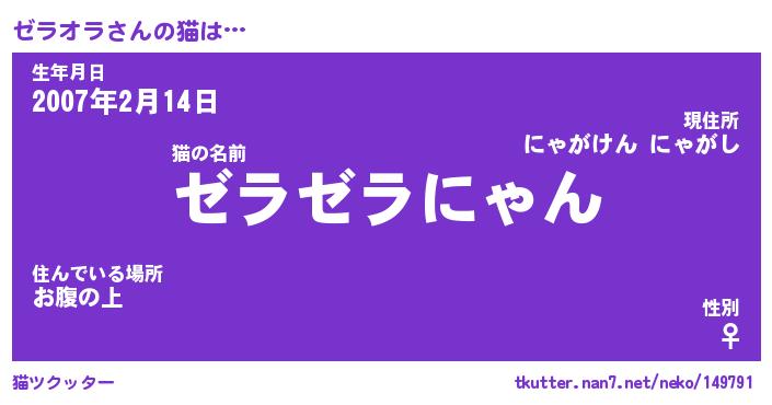 | 意味不明あだ名 | 『ペロリンゼラオラ』『永久保存ゼラオラ』 |