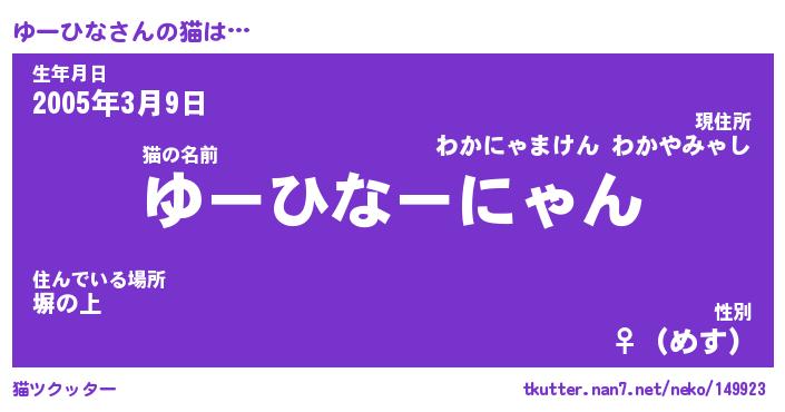 | 意味不明あだ名 | 『ペロリンゆーひな』『永久保存ゆーひな』 |