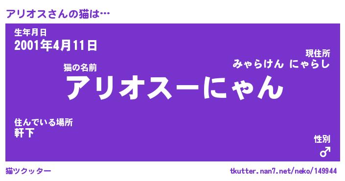 | 意味不明あだ名 | 『ペロリンアリオス』『永久保存アリオス』 |