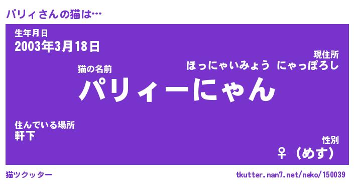 | 生年月日? …「くろねこ」 | 8月01日 10:16 |