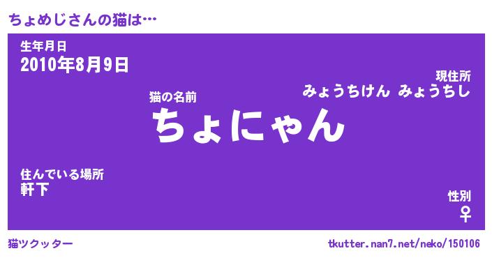 | 意味不明あだ名 | 『ペロリンちょめじ』『永久保存ちょめじ』 |