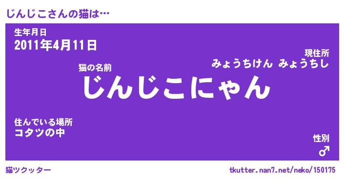 | 男性向けラノベタイトル風あだ名 | 『じんじこの憂鬱』 |
