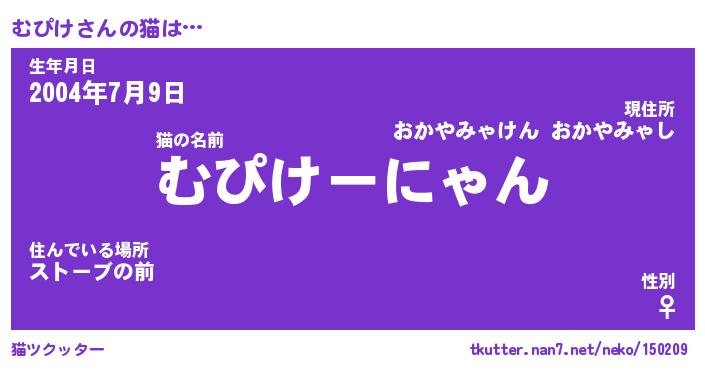 | 意味不明あだ名 | 『ペロリンむぴけ』『むぴけフォーエバー』 |