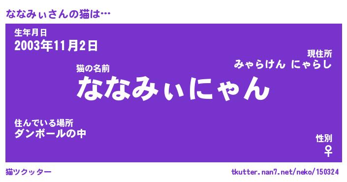 | 生年月日? …「くろねこ」 | 8月01日 10:16 |