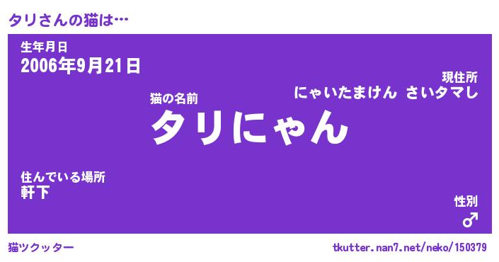 | ポケモン風あだ名 | 『タリチュウ』『タリダネ』『ヒタリ』 |