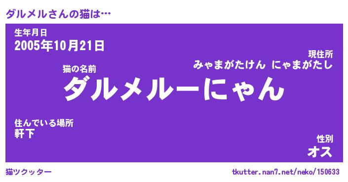 | 意味不明あだ名 | 『ペロリンダルメル』『永久保存ダルメル』 |