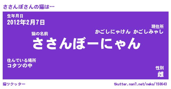 | 意味不明あだ名 | 『ペロリンささんぼ』『永久保存ささんぼ』 |