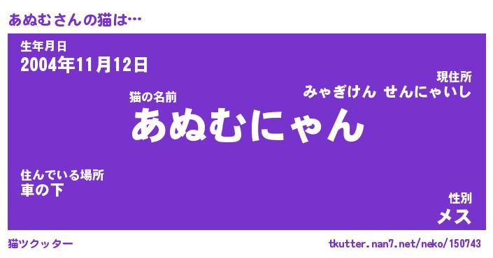 | ポケモン風あだ名 | 『アヌチュウ』『アヌムダネ』 |