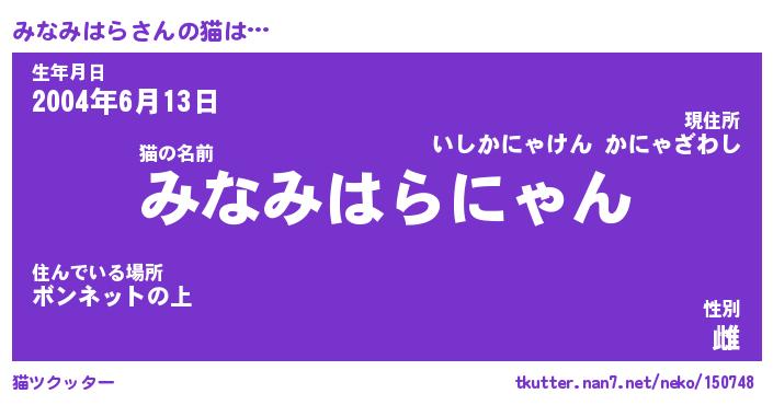 | ファンタジー風あだ名 | 『ミナフェル』『エターナルミナミハラー』 |