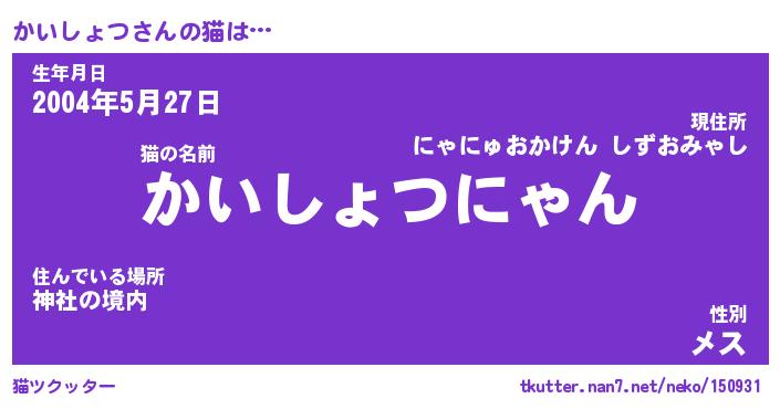 | 生年月日? …「くろねこ」 | 8月01日 10:16 |