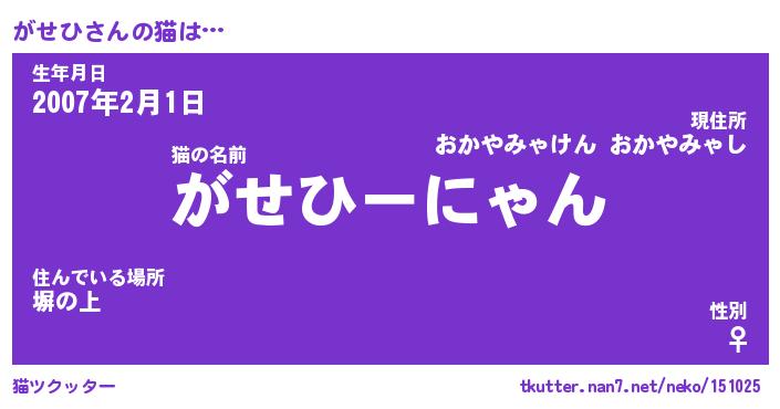 | ヘコむあだ名 | 『がせもー』『なまこ酢』『がせ太郎』 |