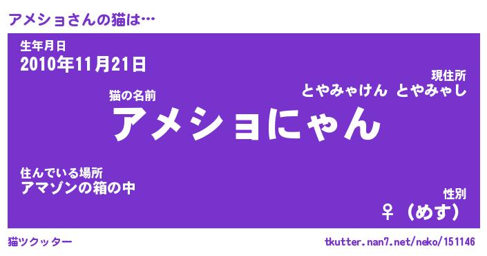 | 意味不明あだ名 | 『ペロリンアメショ』『永久保存アメショ』 |