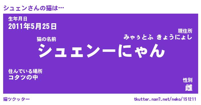 | 意味不明あだ名 | 『ペロリンシュェン』『永久保存シュェン』 |