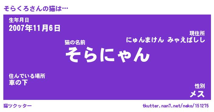 | 意味不明あだ名 | 『ペロリンそらくろ』『永久保存そらくろ』 |