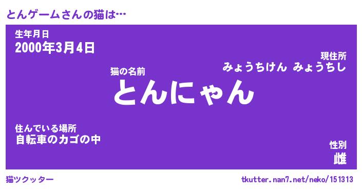 | ファンタジー風あだ名 | 『トンフェル』『エターナルトンゲームー』 |