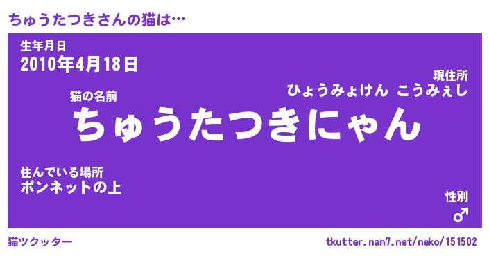 | ヒーロー風カッコイイあだ名 | 『スーパーチュウタツキ』『天弓騎士チュ』 |