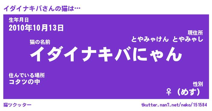 | 男性向けラノベタイトル風あだ名 | 『イダイナキバの憂鬱』 |
