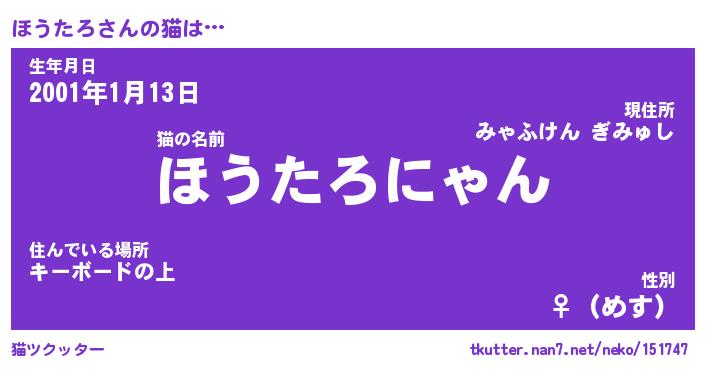 | 生年月日? …「くろねこ」 | 8月01日 10:16 |