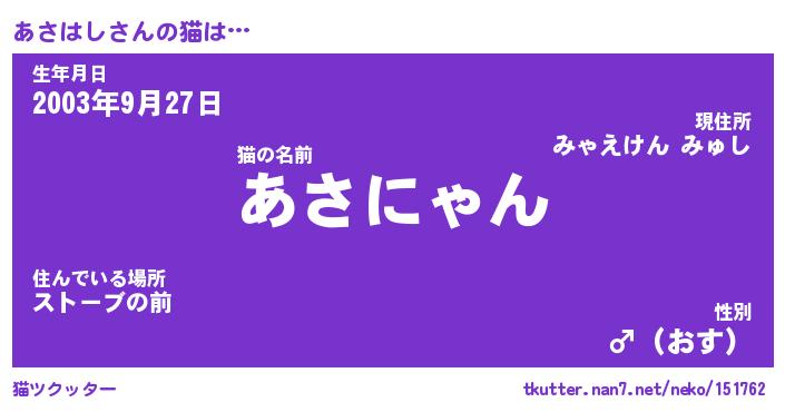 | ポケモン風あだ名 | 『アサチュウ』『アサハダネ』 |
