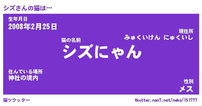 | 2回繰り返すあだ名 | 『シズシズ』『シシズズ』『ふるふる』 |