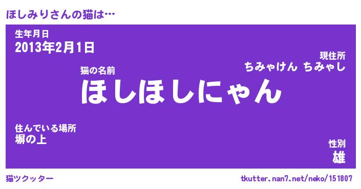 | ファンタジー風あだ名 | 『ホシフェル』『エターナルホシミリー』 |