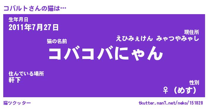 | ファンタジー風あだ名 | 『コバフェル』『エターナルコバルトー』 |