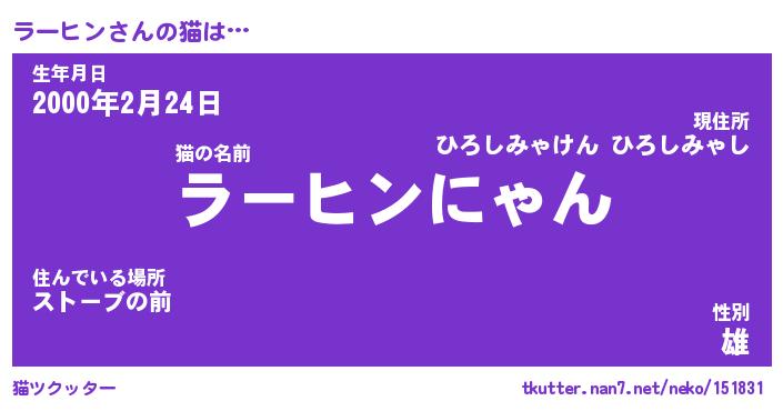 | 生年月日? …「くろねこ」 | 8月01日 10:16 |