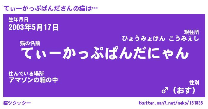 | 肩書あだ名 | 『てぃーかっぷぱんだ御曹司』 |