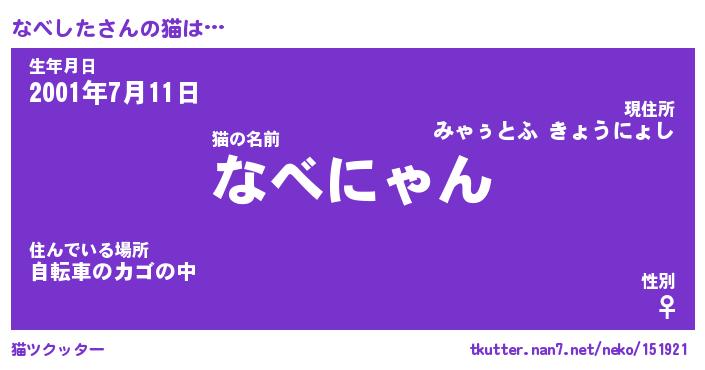 | 生年月日? …「くろねこ」 | 8月01日 10:16 |