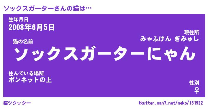 | 伝説のあだ名 | 『伝説のスナイパーソックスガーター』 |