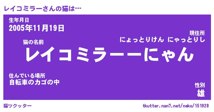 | 意味不明あだ名 | 『ペロリンレイコミラー』 |