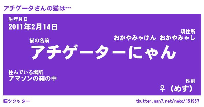 | 肩書あだ名 | 『アチゲータCEO』『アチゲータ総理大臣』 |