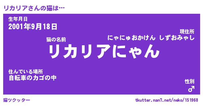 | 意味不明あだ名 | 『ペロリンリカリア』『永久保存リカリア』 |