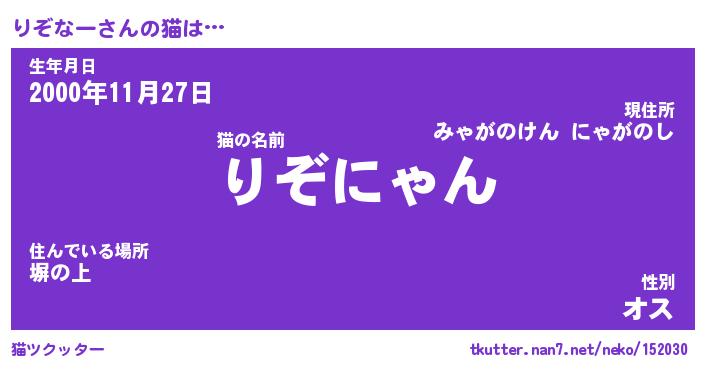 | 意味不明あだ名 | 『ペロリンりぞなー』『永久保存りぞなー』 |