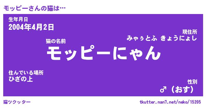 | 意味不明あだ名 | 『ペロリンモッピー』『永久保存モッピー』 |