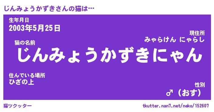 | 男性向けラノベタイトル風あだ名 | 『じんみょうかずきの憂鬱』 |