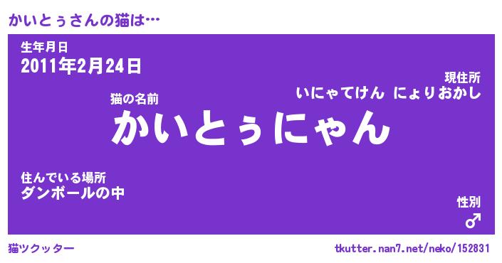 | 意味不明あだ名 | 『ペロリンかいとぅ』『永久保存かいとぅ』 |