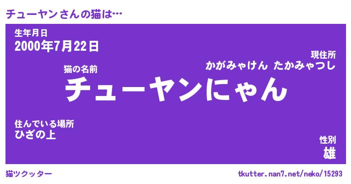 | 男性向けラノベタイトル風あだ名 | 『チューヤンの憂鬱』 |
