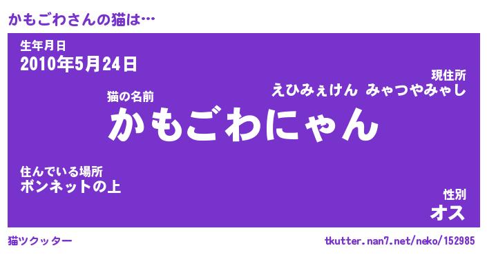 | 意味不明あだ名 | 『ペロリンかもごわ』『永久保存かもごわ』 |