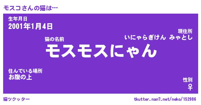 | ヘコむあだ名 | 『モスもー』『つくし』『モスぷりん』 |