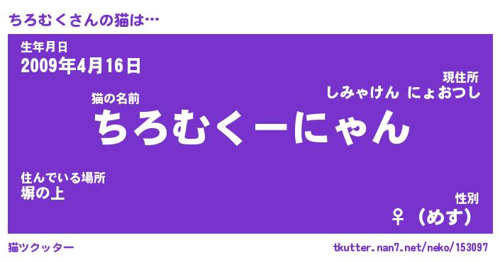 | 意味不明あだ名 | 『ペロリンちろむく』『永久保存ちろむく』 |