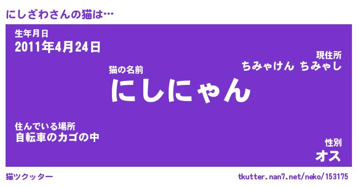 | ポケモン風あだ名 | 『ニシチュウ』『ニシザダネ』 |