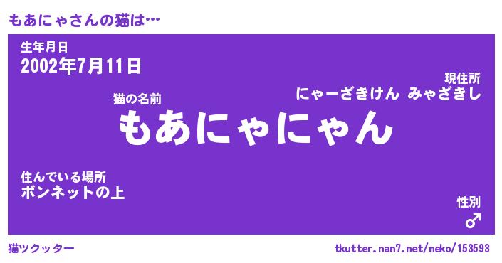 | 肩書あだ名 | 『もあにゃ店長』『もあにゃ大統領』 |