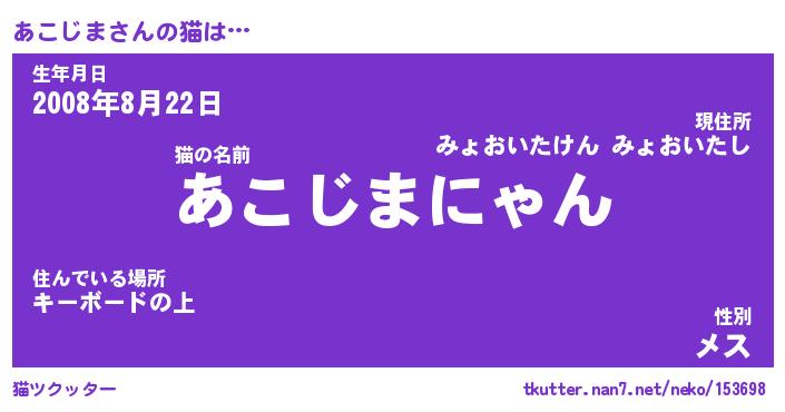 | 意味不明あだ名 | 『ペロリンあこじま』『永久保存あこじま』 |